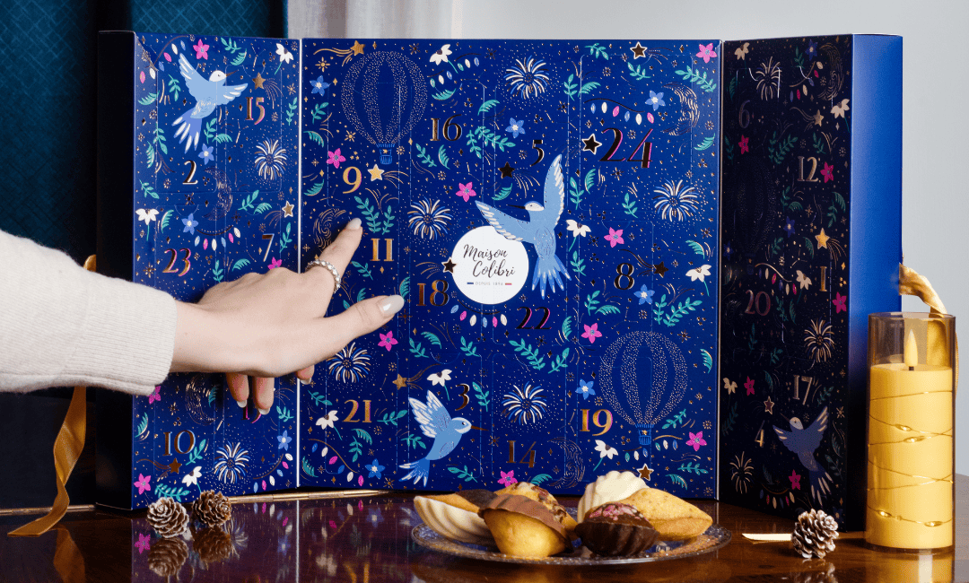 Véritable pièce maîtresse de notre collection, le Calendrier de l’Avent Maison Colibri transforme chaque journée de décembre en un moment de fête. Derrière ses 24 cases se cachent 24 madeleines différentes, dont 7 créations inédites et une surprise exclusive à découvrir le 24 décembre. Inspiré par l’univers féérique de la Nuit Étoilée, ce calendrier de madeleine n’est pas seulement un objet décoratif : il est une expérience sensorielle et poétique, une invitation à patienter jusqu’à Noël dans un tourbillon de douceurs. Plus qu’un simple coffret, c’est l’idée cadeau gourmand pour Noël la plus originale et attendue, qui séduit autant les enfants que les adultes, et qui s’impose comme un rituel incontournable des fêtes.